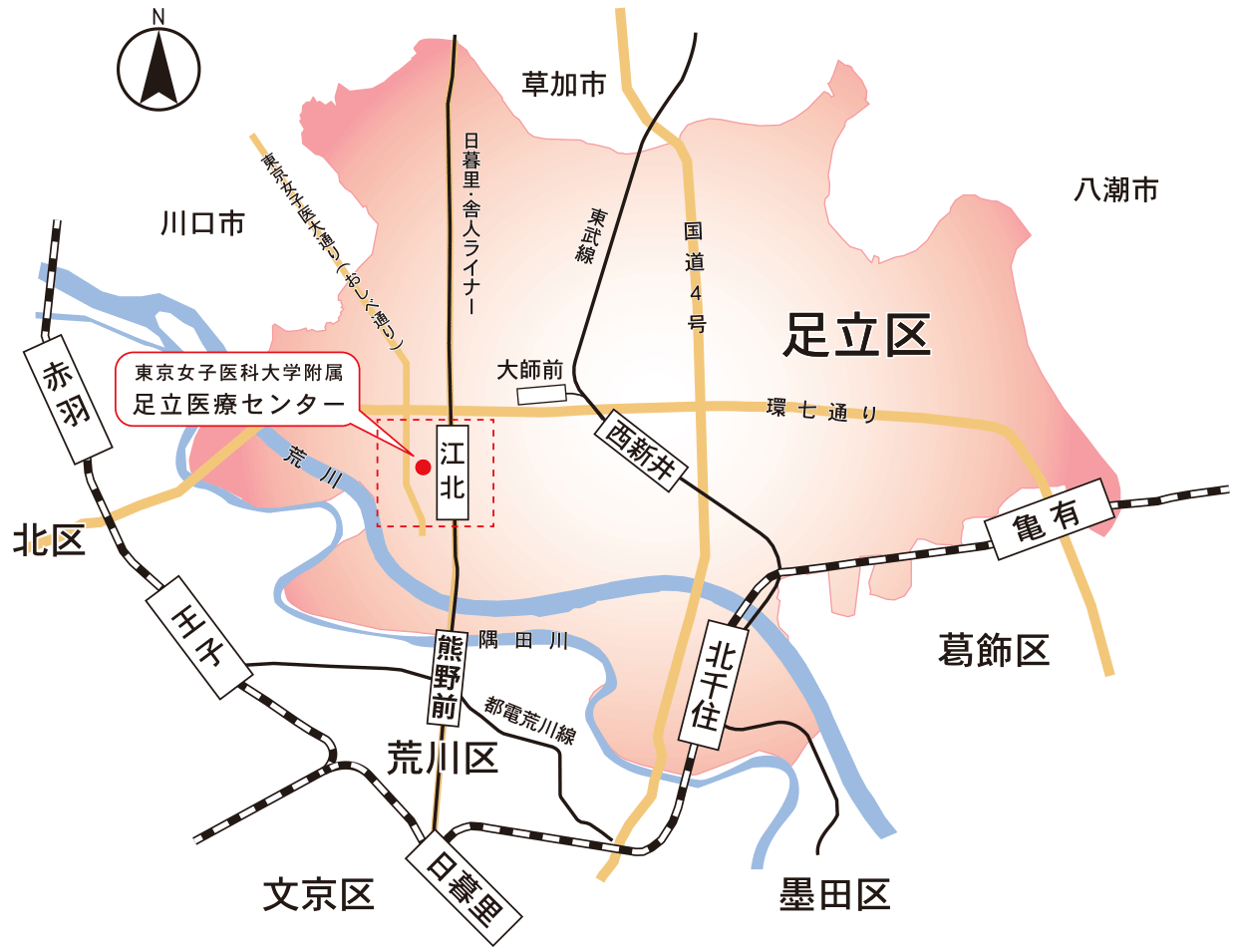 - 北千住駅~江北駅~東京女子医大足立医療センター